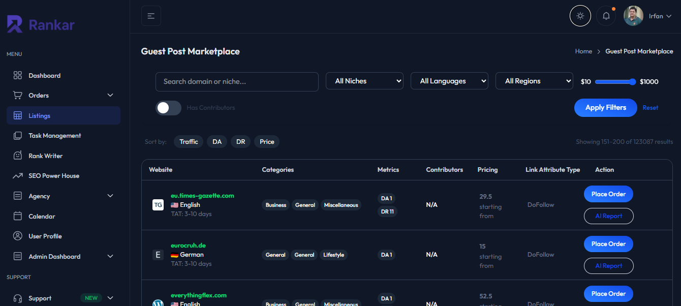 Guest posting has never been this easy. Instead of emailing 50 publishers, I find everything inside Rankar. Listing my websites brought me new revenue streams I never had before.