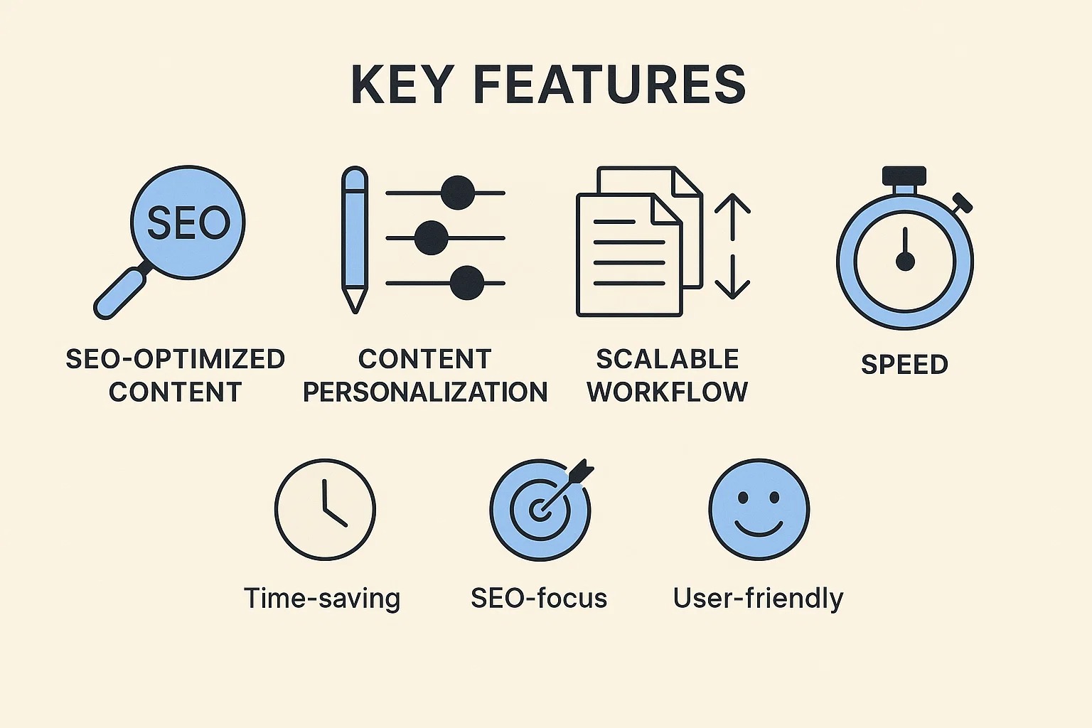 Content Type: Choose whether you need a blog post, product description, meta title, or any other type of content. Each format is optimized for its specific purpose, ensuring readability and SEO performance.