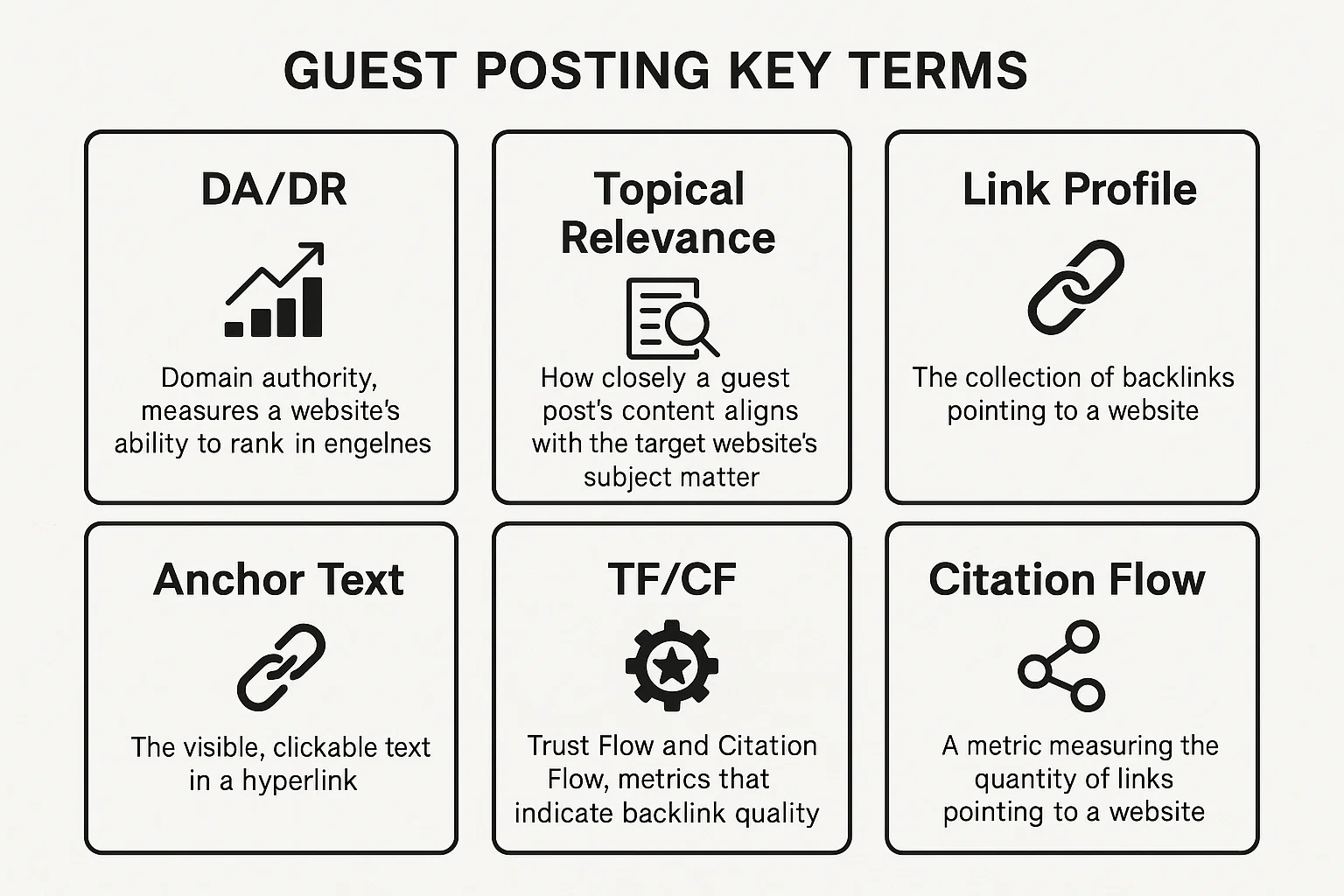 Finding high-quality guest posting sites is a strategic SEO and digital PR task that requires a deep understanding of content quality, domain metrics, topical relevance, and outreach psychology. This guide provides a comprehensive, step-by-step approach to identifying, evaluating, and securing placements on premium guest post sites—even if you're new to the game. 1. Understanding Guest Posting - Key Definitions Term Definition Guest Posting The process of writing and publishing an article on someone else's website DA/DR Domain Authority (Moz) / Domain Rating (Ahrefs) indicating site reputation Topical Relevance The degree to which a website's theme matches your niche Link Profile The quality, diversity, and trustworthiness of backlinks pointing to a site Anchor Text The clickable text in a hyperlink—should be relevant and non-spammy Citation Flow (CF) Measures the link power or influence of a site (Majestic metric) Trust Flow (TF) Measures the trustworthiness of a site based on backlink proximity