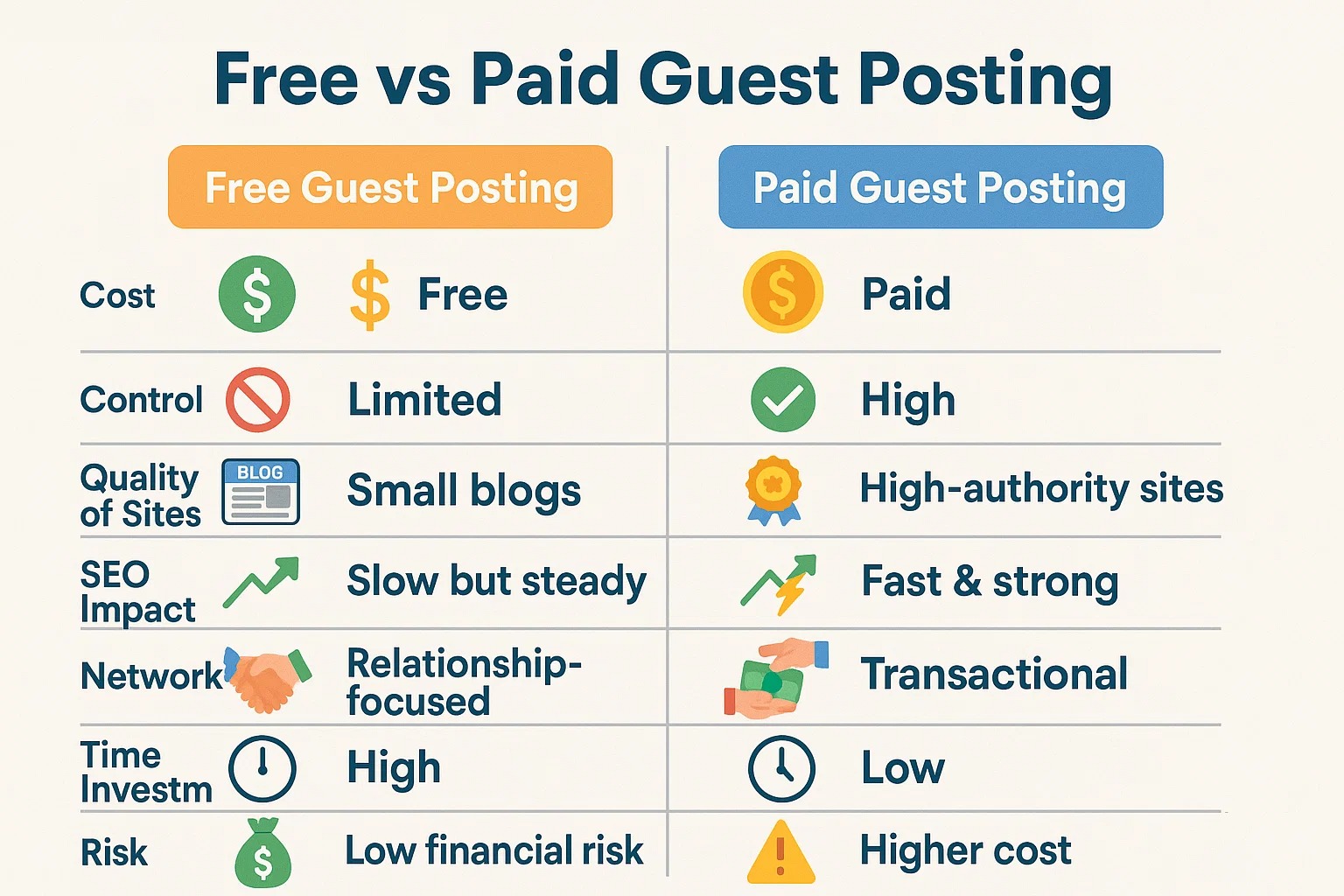 Aspect | Free Guest Posting | Paid Guest Posting |