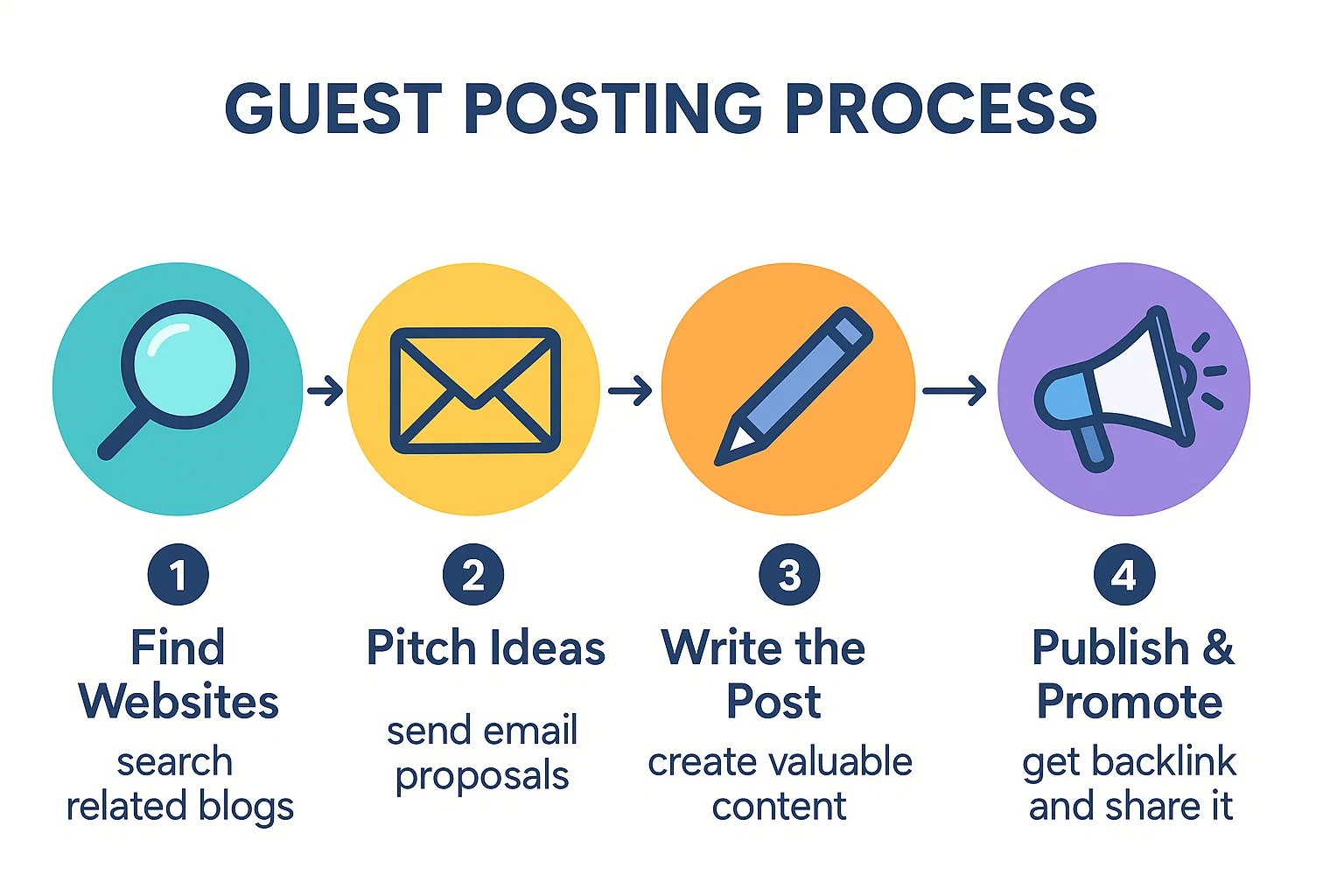 Finally, once the post is published, you should promote it yourself. Share it on social media, your website, or with your friends and followers. This helps more people see your work and drives traffic back to your website through the link included in your guest post.